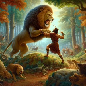 האגדה התנכ"ית מספרת על שמשון הגיבור, שיצא לשאת לו אישה פלשתית (לא את דלילה, היא שייכת לסיפור אחר). בדרכו אליה פגש בכפיר אריות ולחם בו בידיו החשופות "וַיְשַׁסְּעֵהוּ כְּשַׁסַּע הַגְּדִי". בהמשך, התנחלו דבורים בגווית האריה, ושמשון רדה דבש מגופת האריה כמתנה לאהובתו הפלשתית.