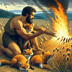 לעיר אשקלון ושדד שלושים פלשתים כדי לשלם את חובו. אך בזאת לא תמו הצרות. לאחר זמן ביקש שמשון לחזור לאשתו, אך מצא כי אביה נתנה לאחר. בכעסו לכד שמשון 300 שועלים, קשר לפידים לזנבותיהם, שילחם בשדות פלשתים והבעיר את כל יבולם. הפלשתים נקמו על ידי שריפת האישה ואביה, וכתגובה היכה אותם שמשון "שׁוֹק עַל-יָרֵךְ".