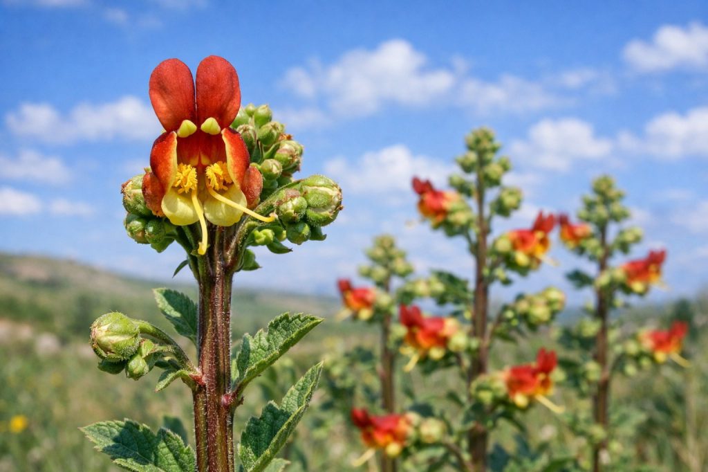 אחת מהם היא לוענית גדולה, אשר לה גבעול אדמדם, עבה ובעל צלעות ופרח כדורי הדומה לכד נפוח פעור פה, ממנו יוצא תחילה העלי, אחריו האבקנים הארוכים ואז הוא נראה כלוע פתוח השולח לשון.