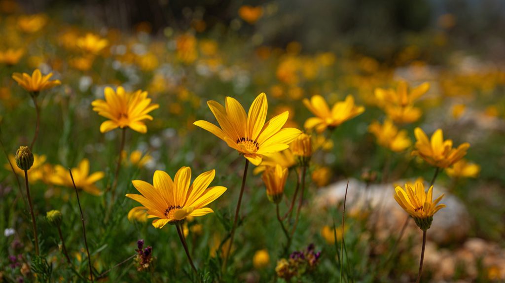 חרצית עטורה היא מהפרחים האלה שכולם מצלמים ואף אחד לא יודע איך קוראים להם. שטיחי צהוב מתגלגלים על מדרונות הגליל, שולי דרכים, דפנות טרסות ושדות בור – וכל זה בזכות חד־שנתי אחד שמייצר אלפי “שמשות” קטנות.