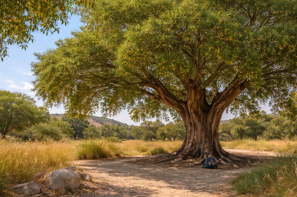 • צמרת רחבה ועגולה היוצרת צל נדיב — מתנה אמיתית למטיילים בקיץ.