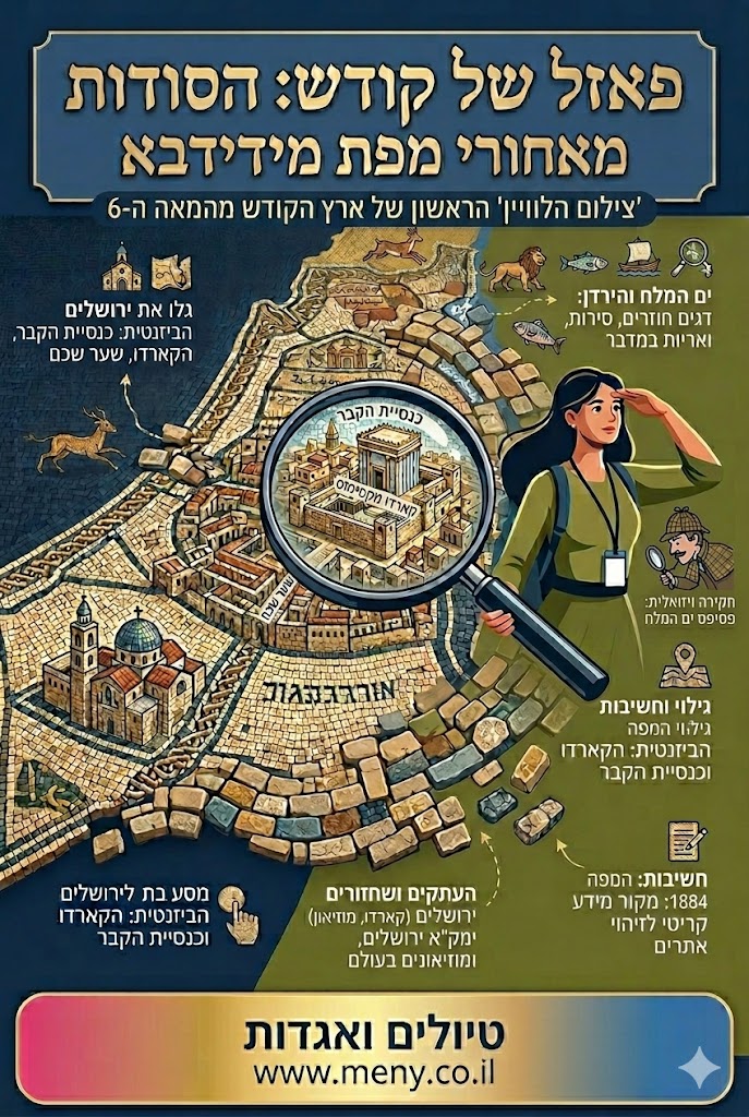 תארו לעצמכם שאתם עומדים בתוך כנסייה עתיקה בירדן, מביטים ברצפה ורואים את כל ארץ ישראל, מלבנון ועד מצרים, פרוסה לפניכם באבנים צבעוניות. אין GPS, אין לוויינים, ובכל זאת – הדיוק מדהים, הפרטים חיים, והסיפור הוא סיפורה של אמונה, פוליטיקה וגיאוגרפיה. זוהי מפת מידבא.
