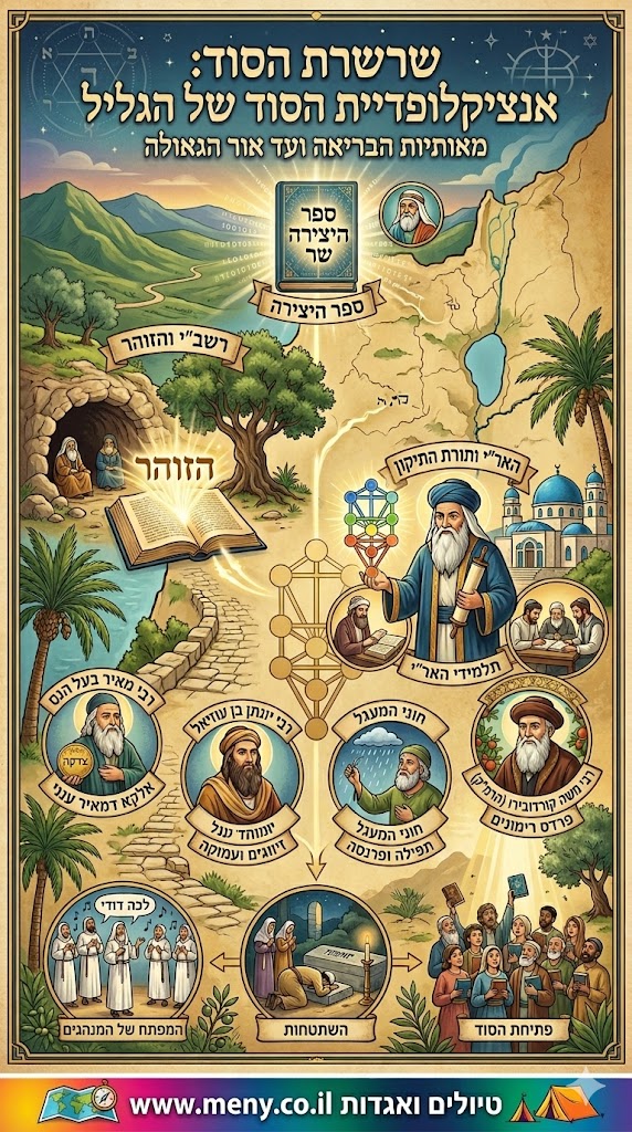 הגליל הוא לא מוזיאון; הוא אורגניזם חי. כשאתם פוסעים בשבילי מירון או יושבים מול הכנרת בטבריה, זכרו שאתם דורכים על אדמה שספוגה באותיות של ספר היצירה, בדמעות של המקובלים ובניסים של הצדיקים. הזמן אולי עובר, אך הסוד – הוא נצחי.