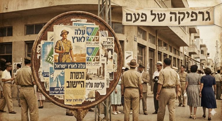 המסע הוויזואלי המקיף ביותר אל הגרפיקה הארצישראלית והישראלית. מכרוזי המחתרות (אצ"ל ולח"י) נגד הבריטים שהודבקו באישון לילה, דרך כרזות התעמולה הציונית (קק"ל, קרן היסוד) והקריאה לגיוס לבריגדה ולצה"ל. ניתוח מעמיק של תרבות הפשקווילים ברחוב החרדי ("זעקה גדולה ומרה!"), לצד כרזות הביטחון ("הסודק!") והפרסום המסחרי התמים של שנות ה-50 וה-60.