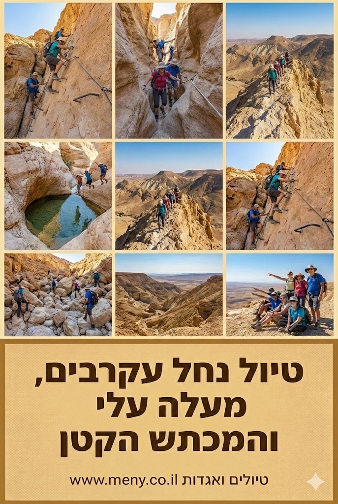 לאחר מכן, נתצפת על המכתש הקטן, נשמע אגדה מקסימה בסלע אשמדאי, ואז נרד דרך מעלה עלי ונחצה את המכתש הקטן דרך החולות הצבעוניים…