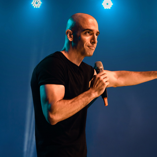 מוטי אהרונוביץ, גאון קומי, מאבות המזון, האיש שהיווה את ההשראה לתנ"ך, מזמין אתכם למופע סטנדאפ ש… אה… לא לא, ממש לא, ננסה שוב.