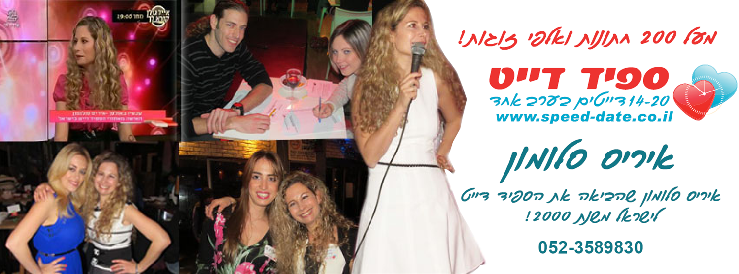 איריס סלומון, פסיכולוגית ומנהלת ספיד דייט 18 שנים, מזמינה אתכם להכיר כ 20 בני זוג פוטנציאלים בערב אחד לקשר רציני.
