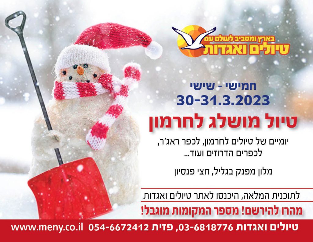 * הערה: החזאים צופים שהחרמון יהיה מושלג במועד הטיול, אולם אם לא תותר כניסה או שלא יוותר בו שלג, ניסע לשמורת החולה במקום.
