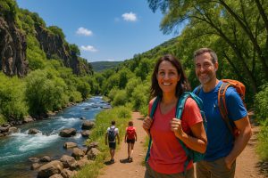 💦 אין צורך להירטב לגמרי – המסלול אינו בתוך המים – אך כמובן שנעצור בנקודות טבילה רעננות, נחלוץ נעליים, נצנן רגליים ונמלא את הלב.