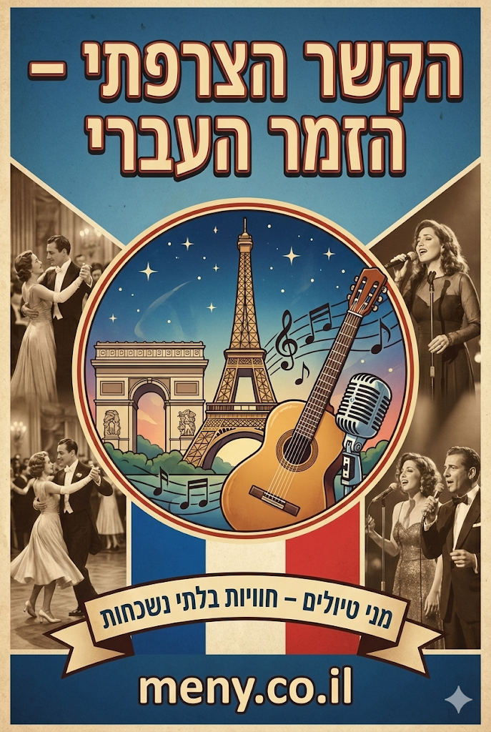 בשנות החמישים עד השבעים של המאה הקודמת נרקם סיפור אהבה מופלא בין התרבות הישראלית לצרפתית. הצרפתית, עם הצלילים המתגלגלים שלה והאווירה הרומנטית, כבשה את הלב הישראלי. מהאקורדיון המתנגן ברחובות פריז ועד לגיטרה האקוסטית בקפה תל אביבי – נוצר חיבור קסום שהדהד בין סמטאות שתי הערים.