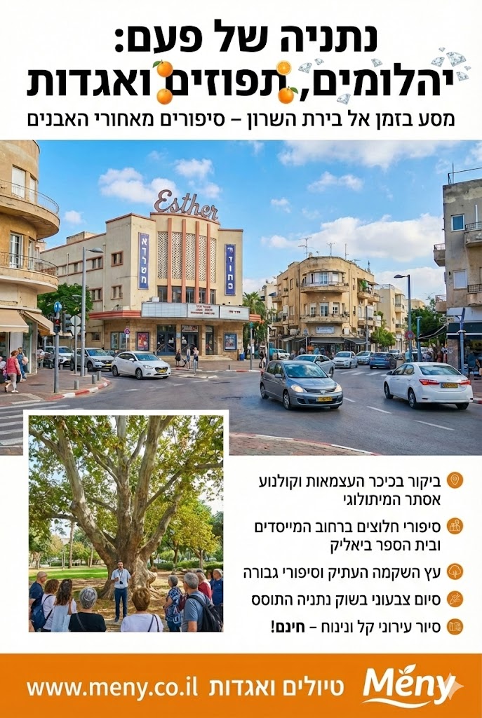נתניה היא הרבה יותר מחופים מדהימים – היא סיפור של תעוזה, קהילה וחלוצים שהפכו חולות לזהב. בטיול המיוחד שלנו נעבור בין הרחובות והמבנים ההיסטוריים שיצרו את העיר של היום, ונשמע סיפורים שמאחורי האבנים.