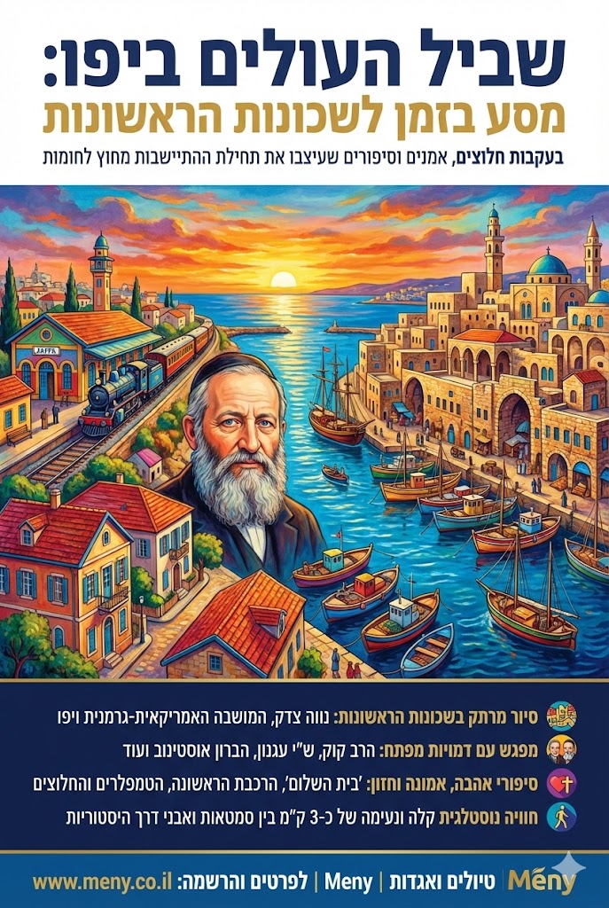 דמיינו את רחש הגלים נשבר אל מול חומות הנמל העתיק, קריאות הסווארים מהדהדות באוויר המלוח, ומבטכם נתקל בעיניהם הנרגשות של עולים חדשים הרואים לראשונה את ארץ הקודש. "שביל העולים" החדש והמרתק ביפו מזמין אתכם למסע מרגש דרך 17 תחנות היסטוריות, המשחזרות את חווייתם של אלפי עולי רגל ועולים שהגיעו לארץ ישראל מהמאה ה-18 ועד ימינו.