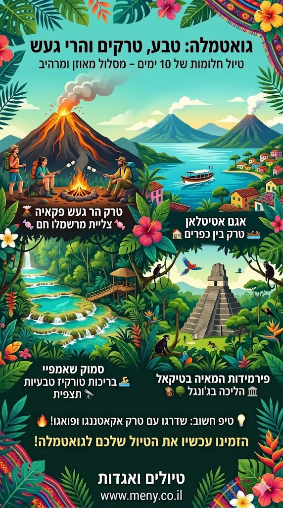 גואטמלה היא יעד חלומי למיטיבי לכת, המשלב טיפוס על הרי געש פעילים, טרקים בג'ונגלים עבותים ומפגש בלתי אמצעי עם תרבות המאיה.