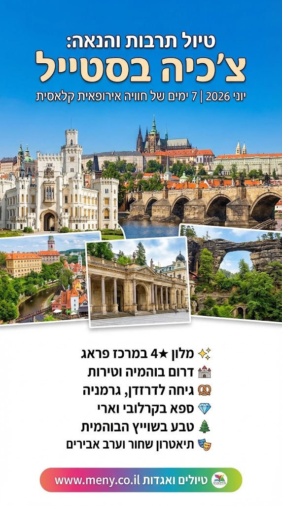 ומעל הכול: צ׳כיה היא יעד ידידותי מאוד לתיירים, קל להתמצא בו, השירות לרוב נעים ומסודר, והוא נחשב נוח במיוחד גם למטיילים מישראל — אווירה שמקבלת תיירים בפתיחות, תחושה בטוחה ונעימה, והרבה “באנו ליהנות וזה עובד”.