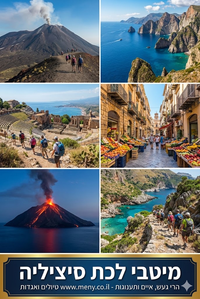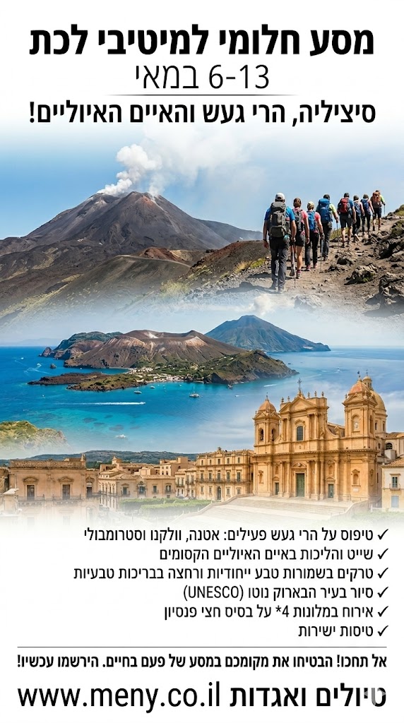 אנו כמובן נטפס על הר הגעש אטנה, נפליג לאיי האיולים ונטפס על הר הגעש הפעיל סטרומבולי, נשמע סיפורי מיתולוגיה, נטפס לפסגות הרים לתצפיות נוף של שמיים וים אינסופי, נפגוש ונרחץ במפלי מים ועוד….