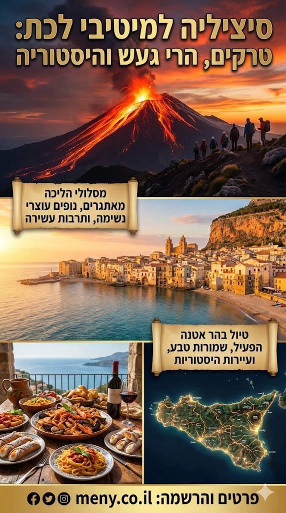 סיציליה – פנינת הים התיכון, הכל יש בה: נופים מרהיבים ותרבות, יערות וחופי ים מופלאים, קולינריה שהיא תענוג גסטרונומי, עיירות ציוריות ובתי מלון מפנקים, פסטיבלים תוססים וחגיגות רחוב, מאפייה, עתיקות ארכיאולוגיות, סירות דייגים והר הגעש אטנה הפעיל ביותר באירופה.